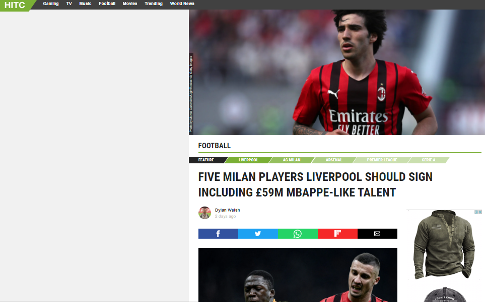 وجه موقع رياضي بريطاني ، نصائح لليفربول للتعاقد مع خمسة لاعبين من نادي ميلان الإيطالي، أبرزهم الدولي الجزائري إسماعيل بن ناصر.