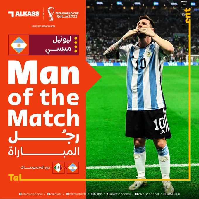 و اختير ميسي أفضل لاعب في المباراة المثيرة و القوية من مجريات مونديال قطر.