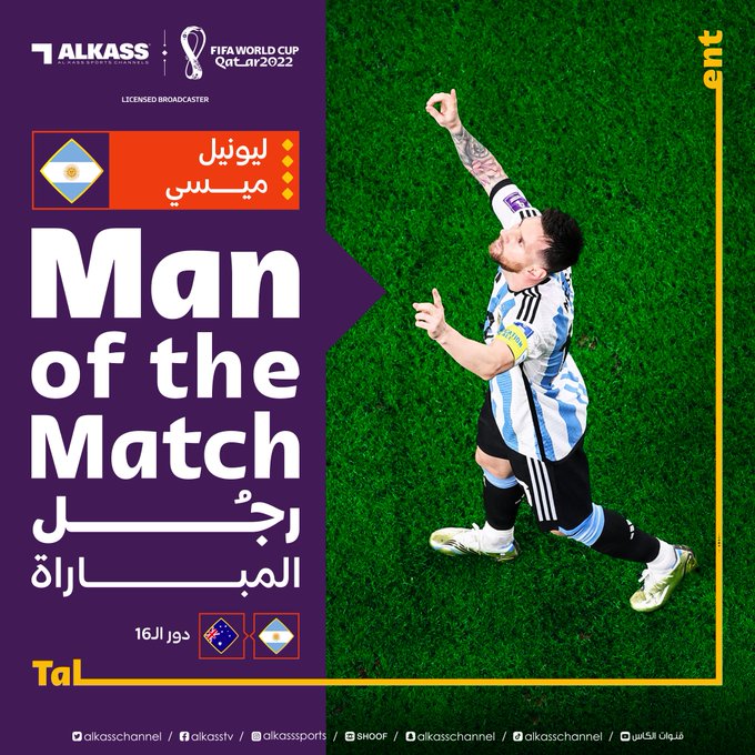 تمكن نجم المنتخب الأرجنتيني ليو ميسي من حصد جائزة أفضل لاعب في مباراة استراليا التي جرت اليوم. بملعب “احمد بن علي” المونديالي.