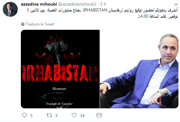 ميهوبي يدعو لحضور توقيع روايته” IRHABISTAN” في معرض الكتاب