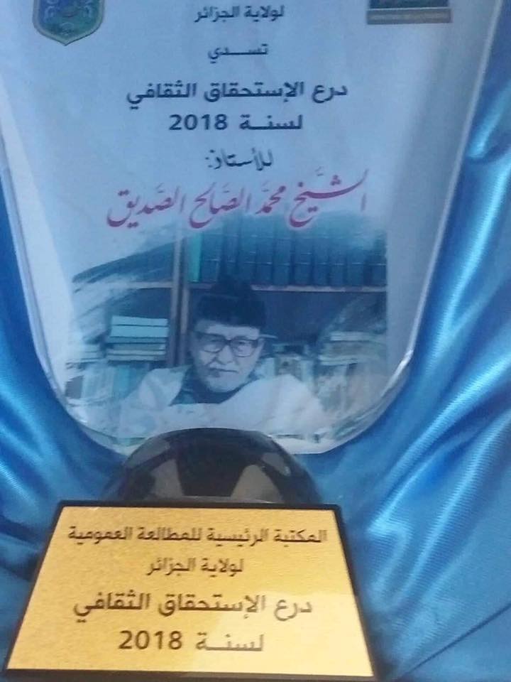 حيث أسدت له المكتبة العمومية لولاية الجزائر درع الاستحقاق الثقافي لسنة 2018.