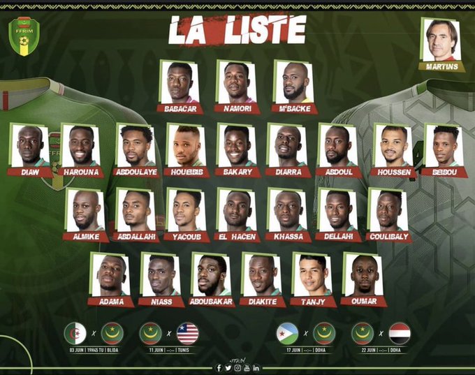 أعلن اليوم الإثنين مُدرب مُنتخب موريتانيا القائمة الخاصة بمواجهة المنتخب الوطني الجزائري الودية.