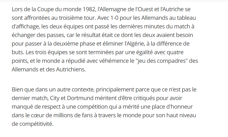 كما شبهت الصحيفة هذه المباراة بـ”فضيحة خيخون” الشهيرة، التي تعود لكأس العالم 1982، بين منتخبي ألمانيا والنمسا وراح ضحيتها المنتخب الوطني آنذاك.