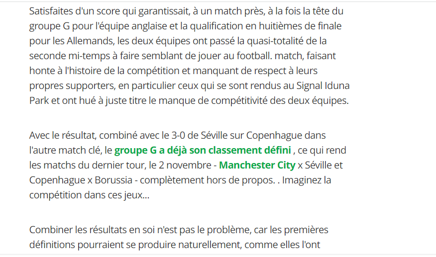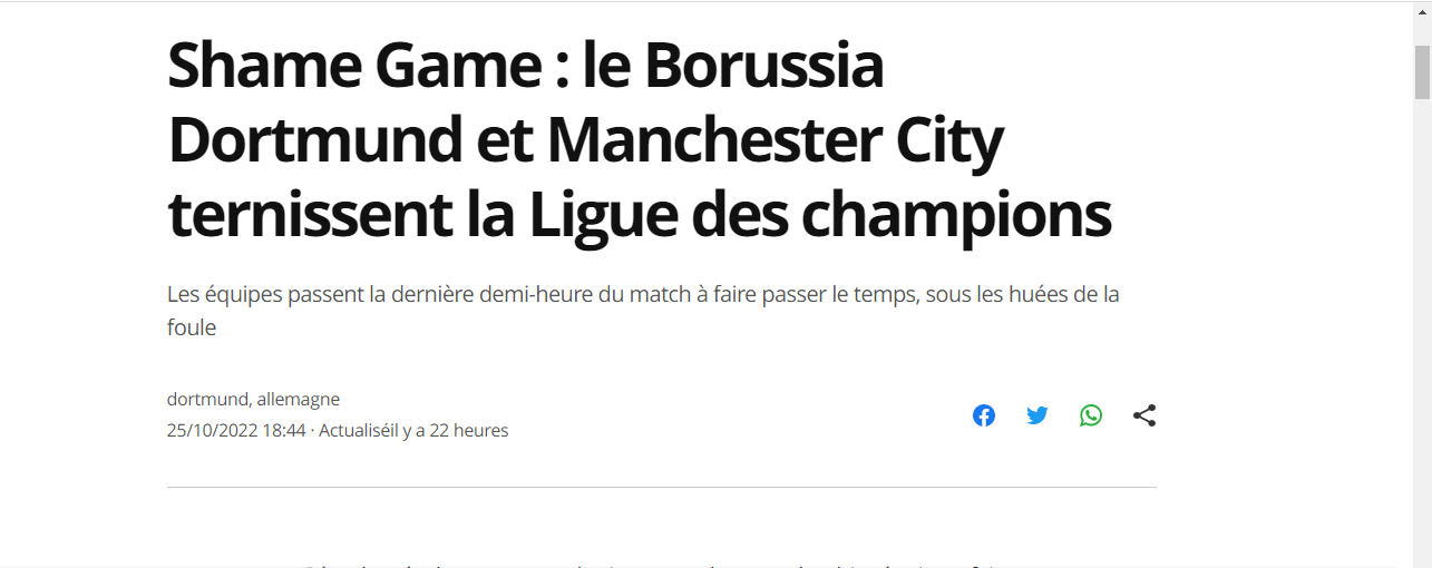 قبل أن تختم الصحيفة بأن هاته المباراة تُسيئ لتاريخ دوري الأبطال، فضلا عن عدم احترام الجماهير التي كانت حاضرة بالمُدرجات.