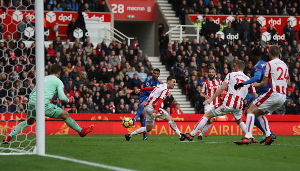 وتوغل محرز، في منطقة جزاء ستوك سيتي، أين راوغ مدافعين قبل أن يسكن الكرة في شباك منافسه، مانحا التقدم للثعالب.