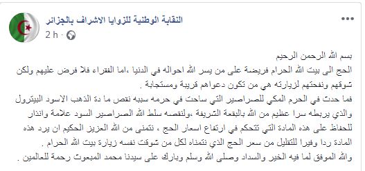 ربطت نقابة الزوايا الأشراف بالجزائر ظاهرة الصراصير في ساحات الحرم المكي بالبترول.