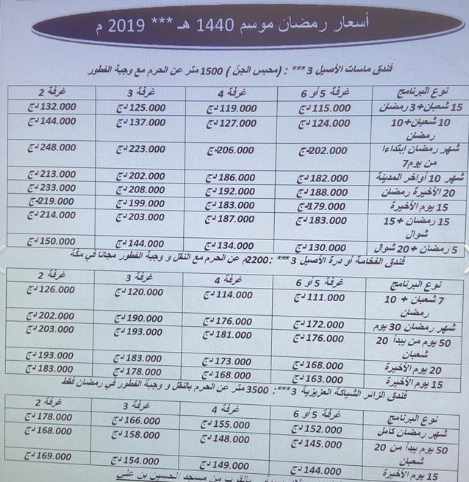 كما تختلف الأسعار أيضا حسب طبيعة الفنادق التي يتم تأجيرها، وكذا الغرف التي يرغب فيها الزبون بين ثنائية، إلى سداسية.