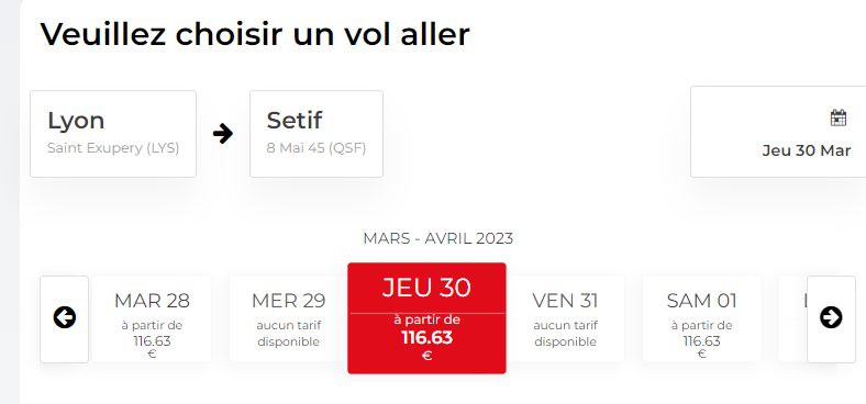 كما عرضت الخطوط الجوية الجزائرية رحلات ذات اتجاه واحد على خط الذي يربط بين ليون وسطيف بسعر يبدأ 116 أورو في شهر مارس، ومن 208 أورو ، في شهر أفريل 2023.