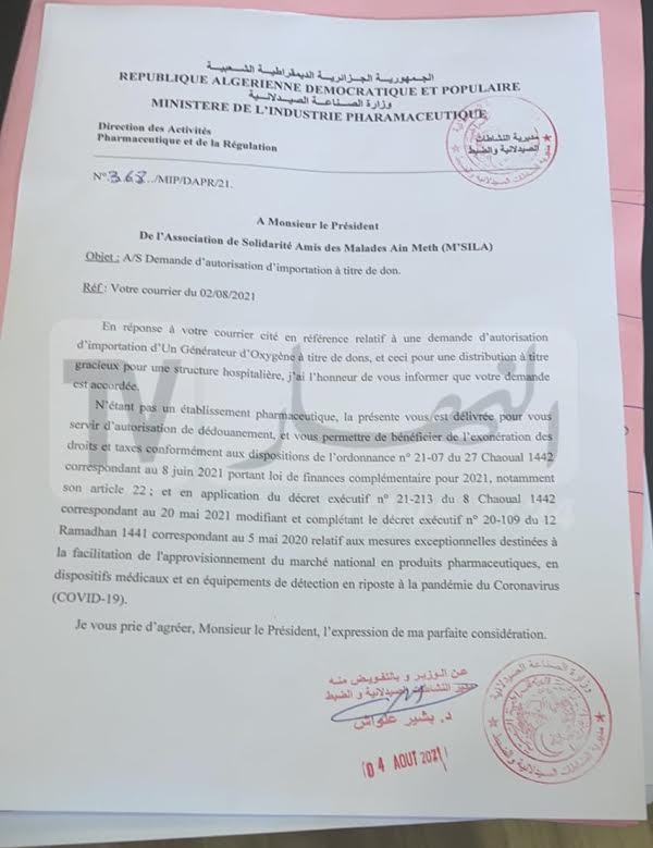هذه المؤسسات والجمعيات التي تحصلت على الترخيص لإستيراد مولدات الأوكسيجين بالمسيلة