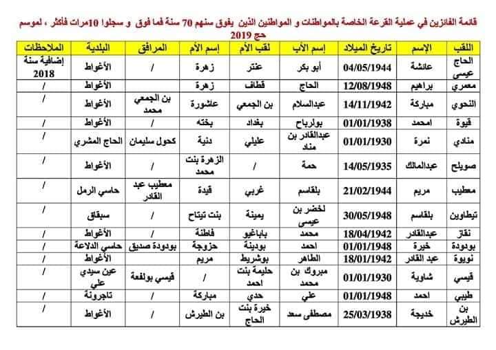 نشرت مديرة الشؤون الدينية لولاية الأغواط قائمة الحصة الإضافية للفائزين بقرعة الحج بالولاية.