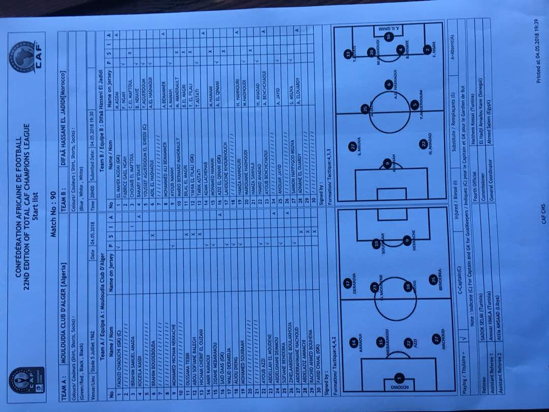 أعاد المدرب كازوني خلال مواجهة اليوم الحارس الأول، فوزي شاوشي، بعد غيابه نتيجة العقوبة المُسلطة عليه، وكذلك إعادة حشود لمكانته الأساسية كظهير أيمن.
