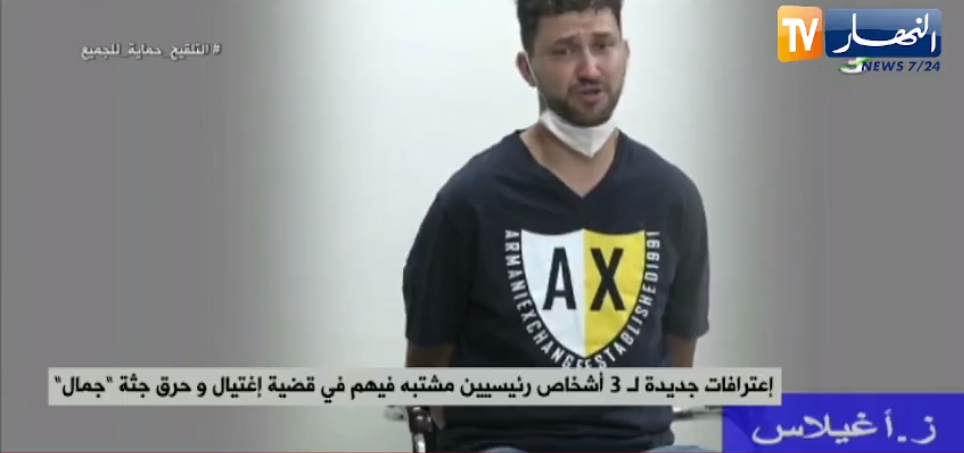 كما صرح المشتبه فيه أن شخصين لا يعرفهما قاما بجر الضحية. بينما قام كل من المسمى التيارتي ورمضان ذو البشرة البيضاء ومعهم أخر يعمل tolier “ع .محمد” بحرق الشاب جمال . وواصل “ق. أحمد” قمت بعد ذلك بتغطية وجهي بمنديل حتى لا اكشف.
