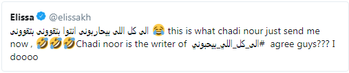 موضّحة أنّ شادي نور الّذي كتب كلمات أغنية “إلى كل اللّي بيحبوني” هو من أرسل إليها هذه الكلمات.
