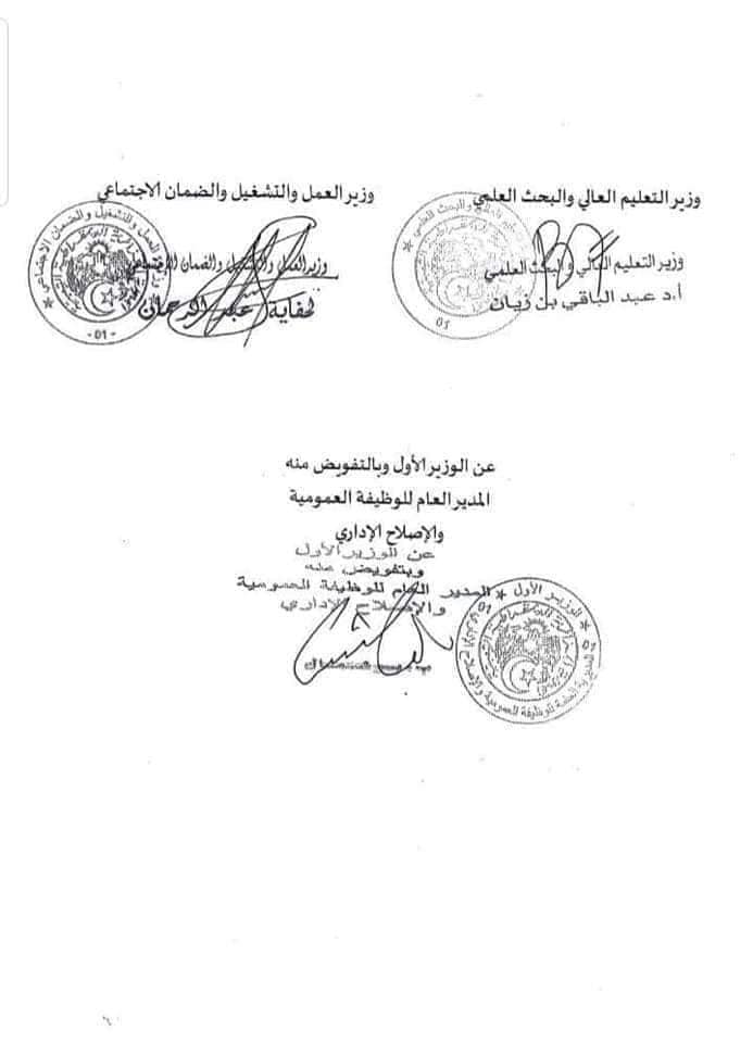 بموجب تعليمة مشتركة لوزارة التعليم العالي ووزارة العمل والوظيف العمومي