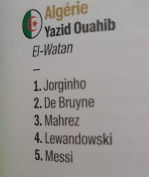 هكذا كان تصويت الممثل الجزائري في جائزة الكرة الذهبية