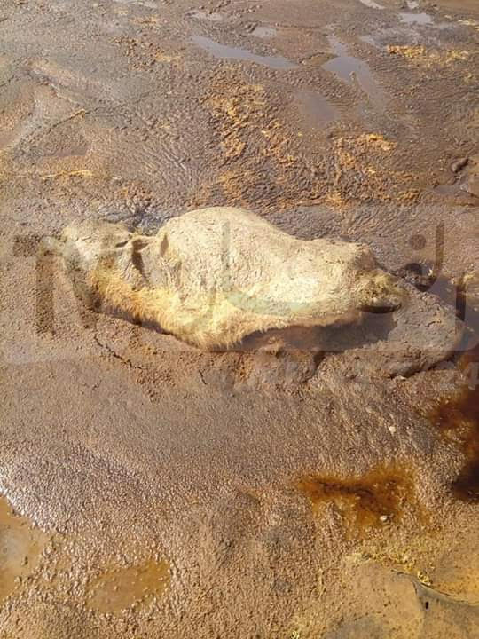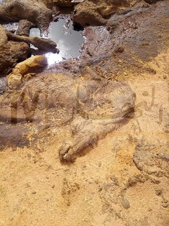 الحالات بسبب سقوطها في آبار بترولية تقع في مواقع الرعي في عمق الصحراء تسببت فيها الشركات البترولية بعد رميها فضلات خطيرة بالقرب من مشاريعها النفطية.