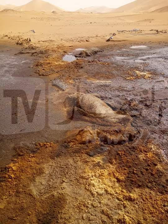وتقرب الإبل من هذه الآبار، للشرب، حيث يحسبها ماء أو تسقط في عمق الأحواض المذكورة، حيث يصعب الوصل إليها، وهي عبارة عن بحيرات تتشكل في الأماكن النفطية أثناء رحلة بحث الشركات عن الذهب الأسود.
