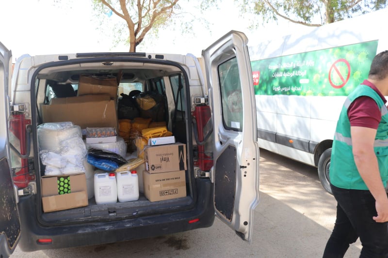 سلمت وزارة البيئة والطاقات المتجددة، لوزير الصحة والسكان وإصلاح المستشفيات، مستلزمات الوقاية والتعقيم.