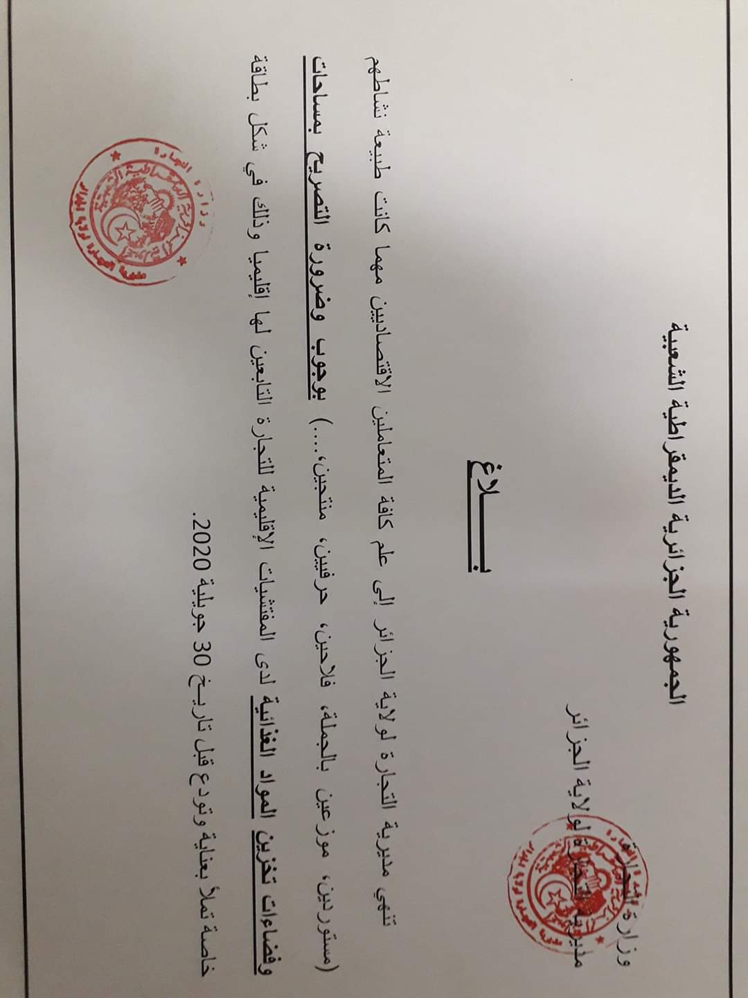 وجاء في إعلان للمديرية، أنه على المتعاملين الإقتصاديين مهما كانت طبيعة نشاطهم، الإتصال بالمفتشيات الإقليمية للتجارة التابعين لها إداريا.