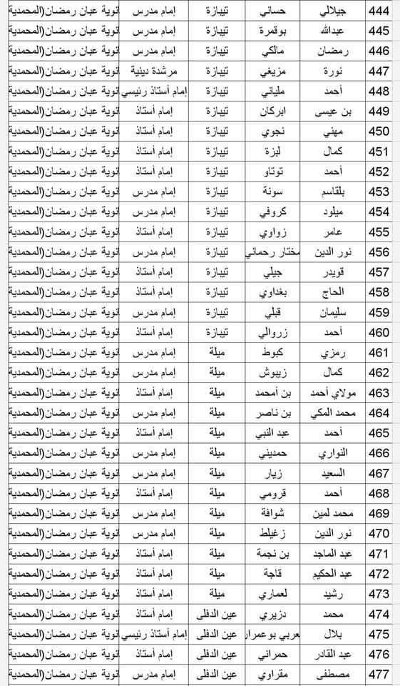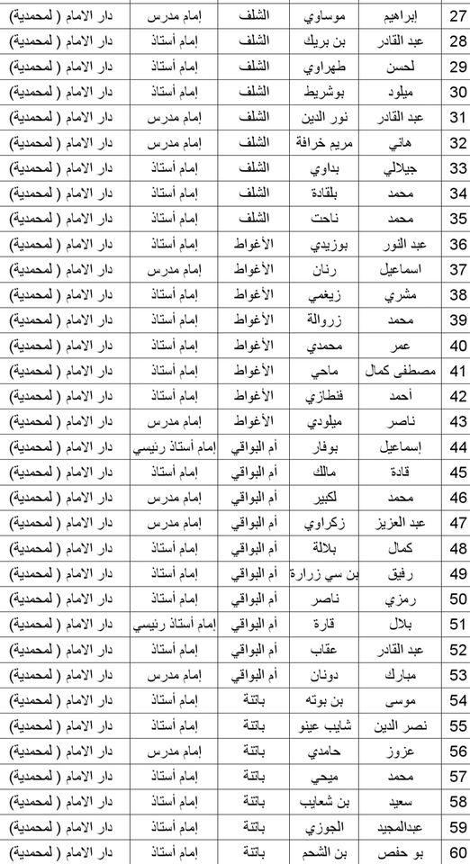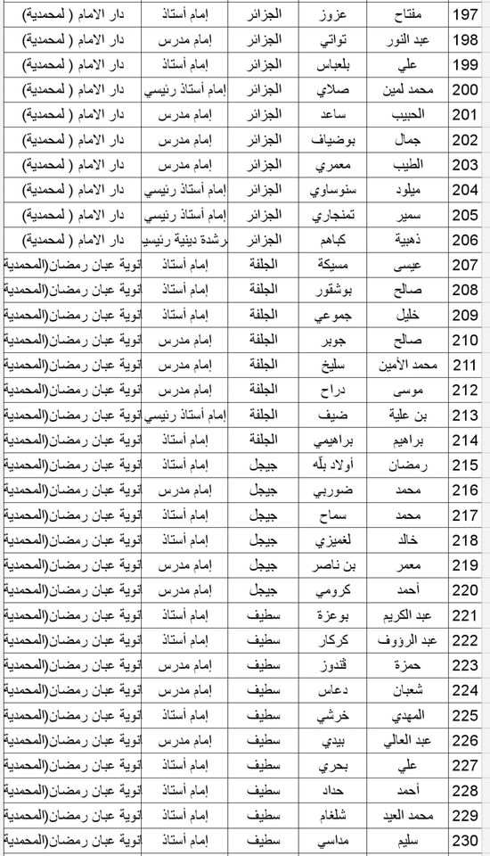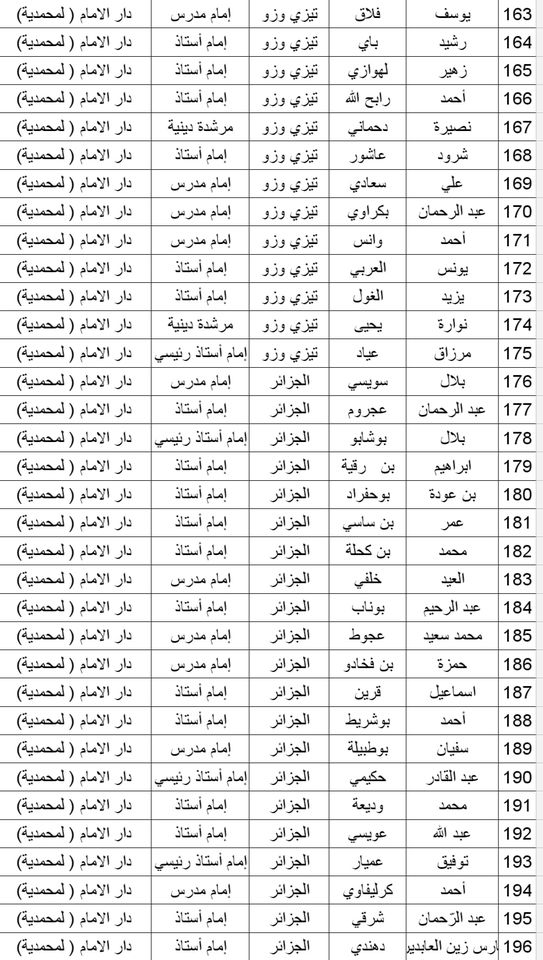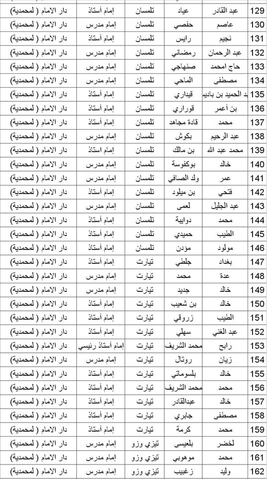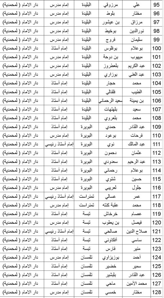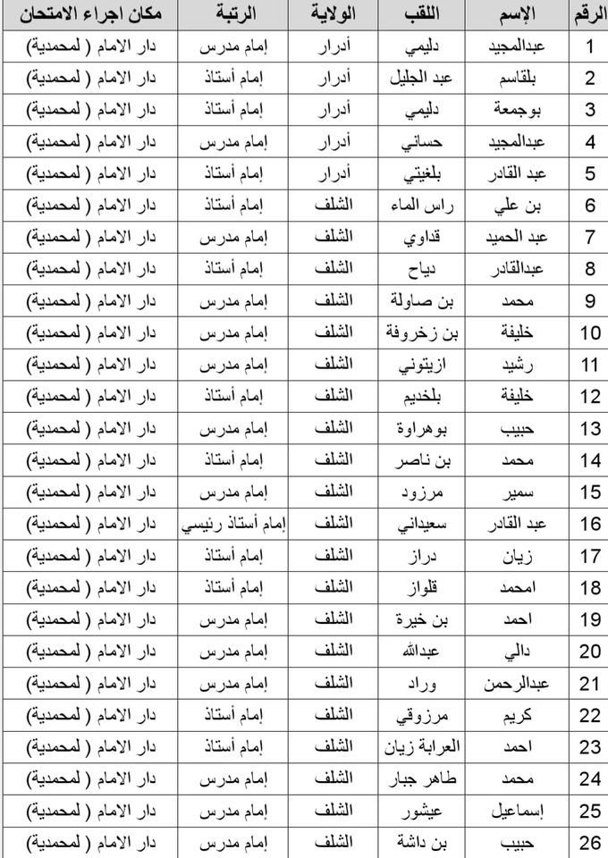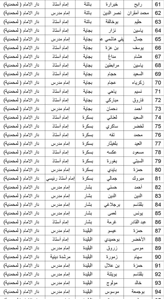 المدرسة الوطنية دار الإمام بالنسبة للولايات التالية: أدرار، الشلف، الأغواط، ام البواقي، باتنة، بجاية، بسكرة، بشار، البليدة، البويرة، تمنراست، تبسة، تلمسان، تيارت، تيزي وزو والجزائر.