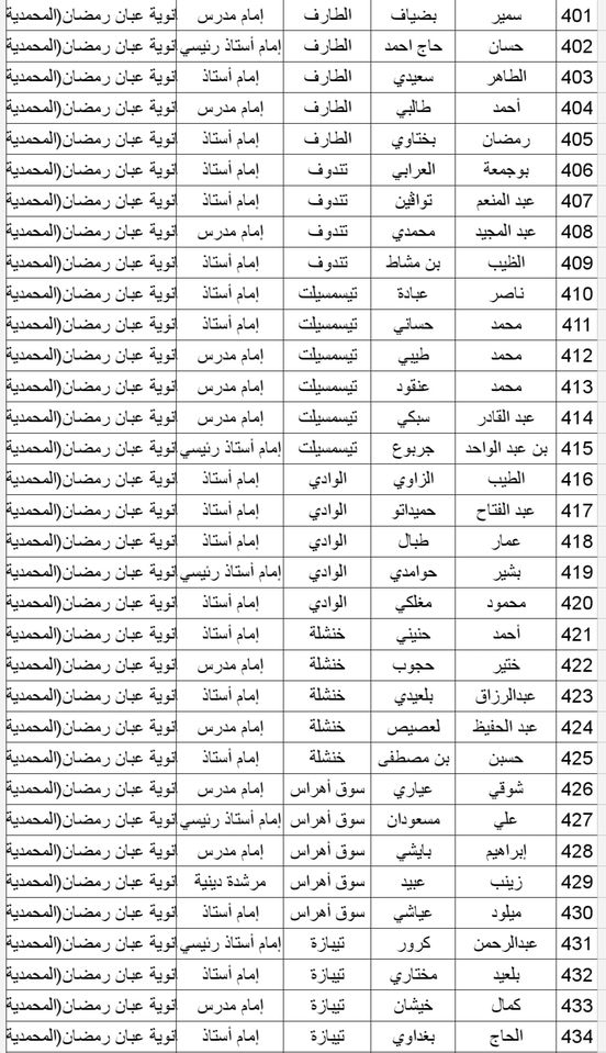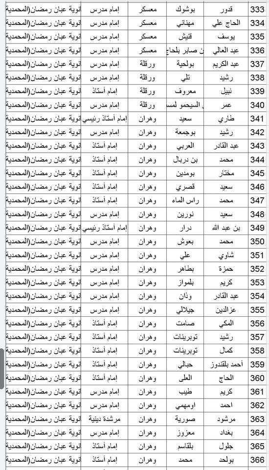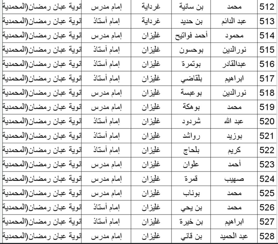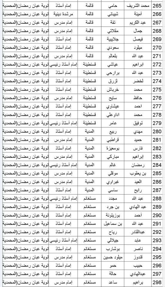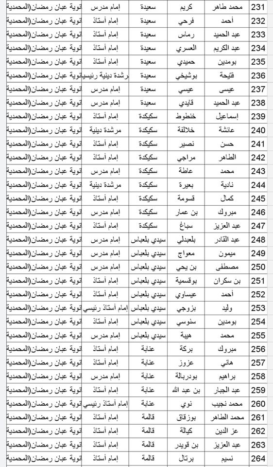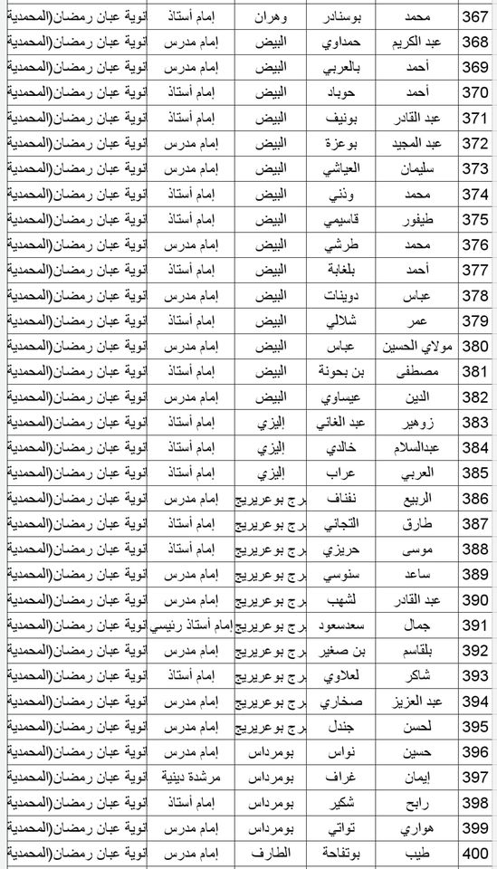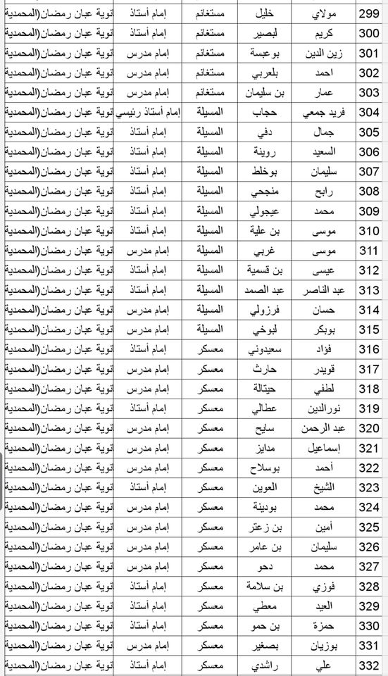 المدرسة الوطنية دار الإمام بالنسبة للولايات التالية: أدرار، الشلف، الأغواط، ام البواقي، باتنة، بجاية، بسكرة، بشار، البليدة، البويرة، تمنراست، تبسة، تلمسان، تيارت، تيزي وزو والجزائر.