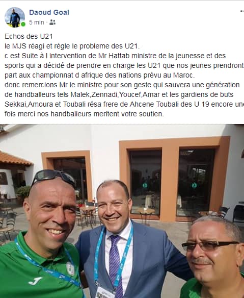 قررت وزارة الشباب والرياضة التكفل بالمنتخب الوطني كرة اليد أقل من 21 سنة للمشاركة في كأس إفريقيا.