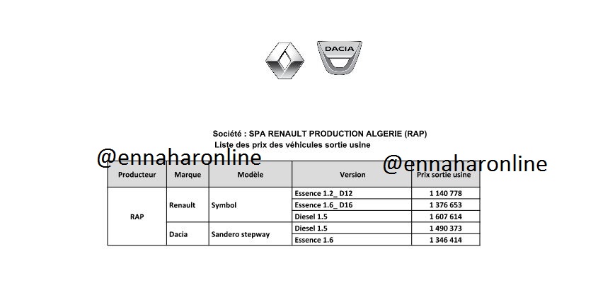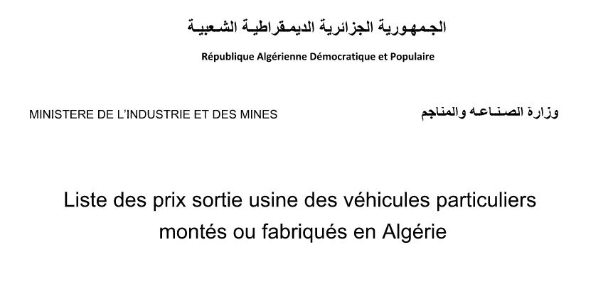 مؤكدة أن هذه الأسعار ليست موجهة للمستهلكين، وإنما هي أسعار المصنع لدى مركبي السيارات في الجزائر.