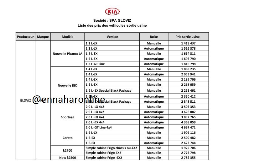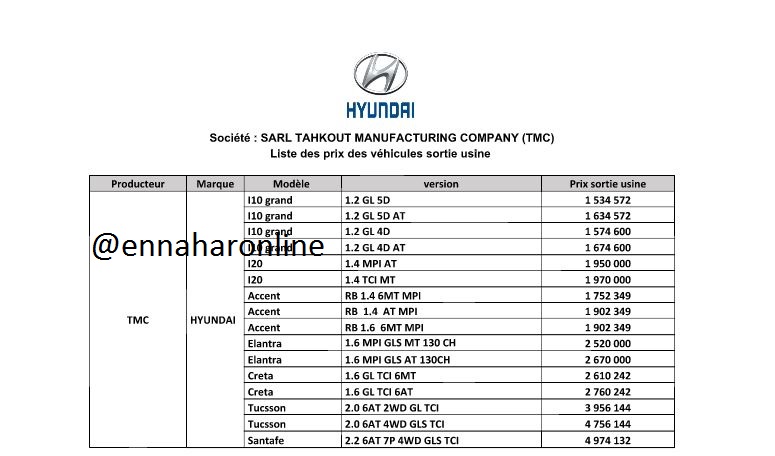 ومن خلال الوثيقة الذي يحوز موقع “النهار أونلاين”، فإن أسعار السيارات تبدأ من 114 مليون، وهي أسعار المصنع.