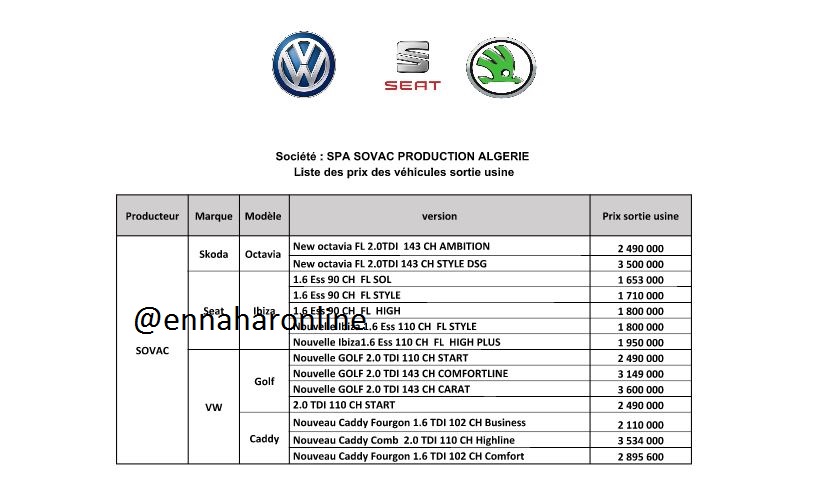 وحسب نفس المصدر، فإن وزارة الصناعة والمناجم تحصلت على الأسعار من منتجي السيارات.