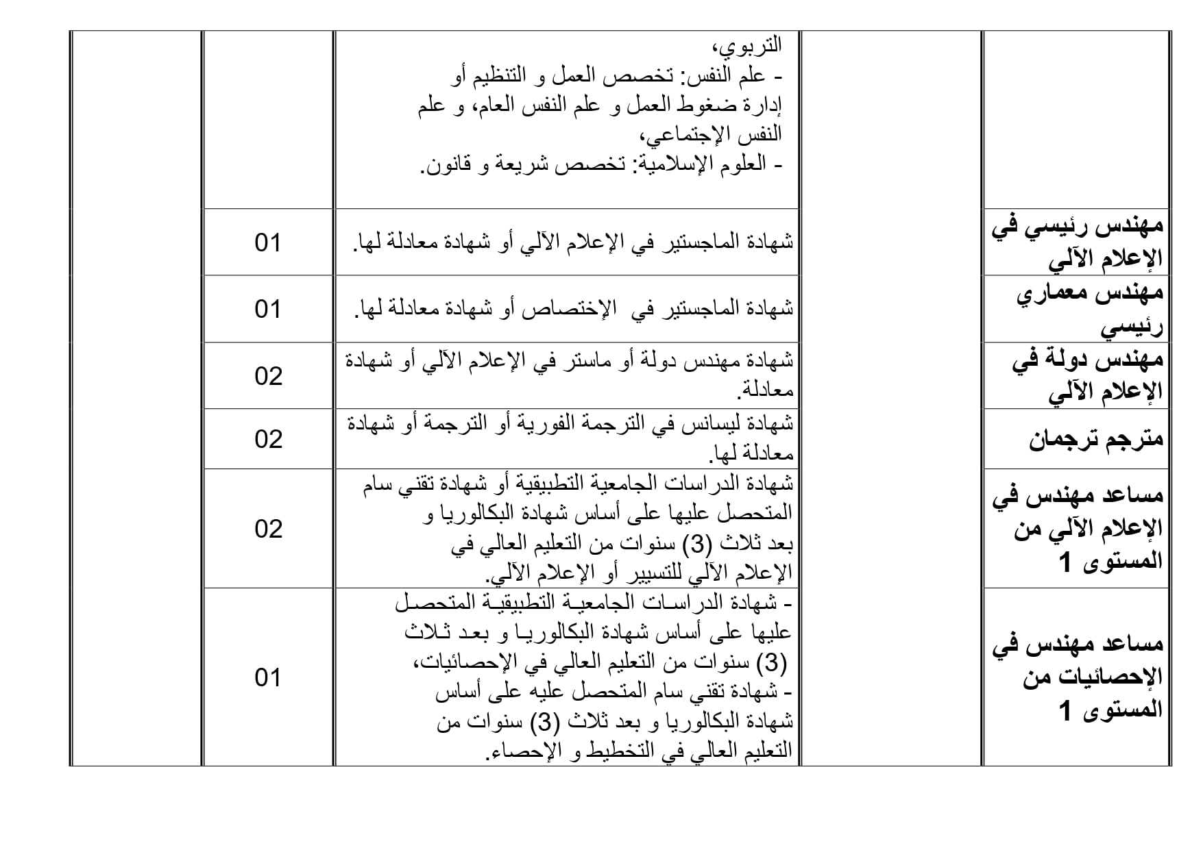 ونشرت الوزارة شروط للتحاق وكذ العدد التخصصات حسب الولايات وايضا ملفات الترشح للمناصب وهي كتالي: