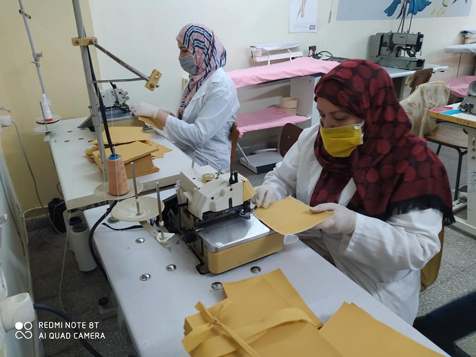 ويسهر المتطوعون من أساتذة مكونون وعمال ومسؤولون على انجاز إلى جانب الكمامات، ألبسة واقية، وأقنعة بلاستيكية وأنفاق التعقيم.