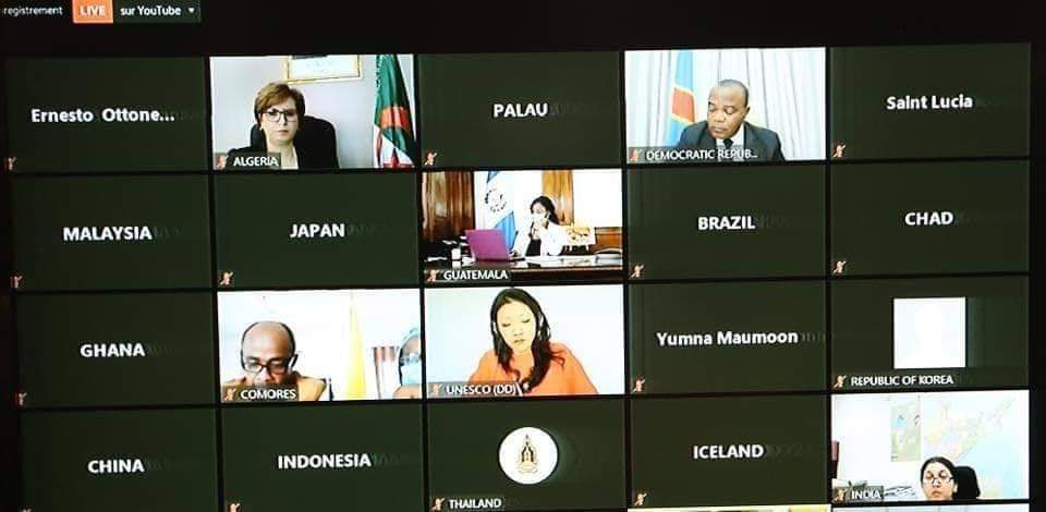 شاركت اليوم وزيرة الثقافة مليكة بن دودة في اجتماع منظمة الأمم المتحدة للتربية والثقافة والعلوم اليونسكو عبر تقنية التحادث عن بعد.