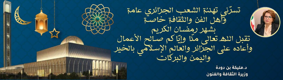 وزيرة الثقافة تهنىء الشعب الجزائري عامة وأهل الفن والثقافة خاصة بشهر رمضان الكريم