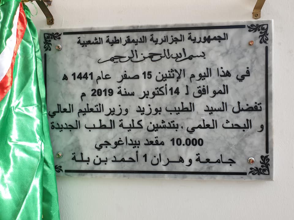 دشن، صبيحة اليوم الإثنين، وزير التعليم العالي والبحث العلمي، الطيب بوزيد، كلية الطب الجديدة في وهران.