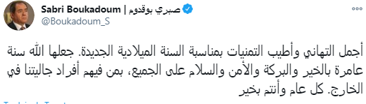 نشر صبري بوقادوم تغريدة عبر التويتر جاء في مضمونها مايلي: