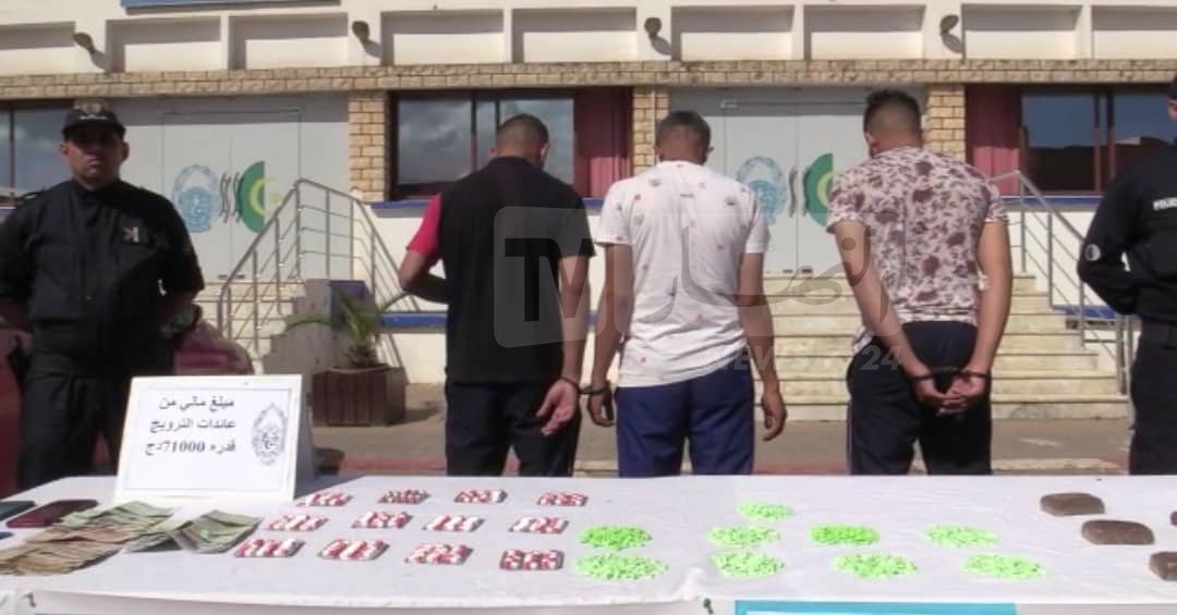 حيث وبعد ترصد لنشاطهم المشبوه واستصدار إذن بالتفتيش تم الإيقاع بهم مع حجز 1082 قرص مهلوس من بينها 900 قرص إكستازي و180 قرص صاروخ 300 ملغ ومبلغ 71000 دج ومركبة إلى جانب 762 غ.