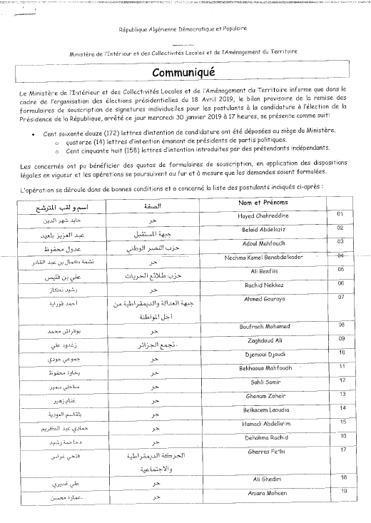172 مترشح لرئاسيات 2019