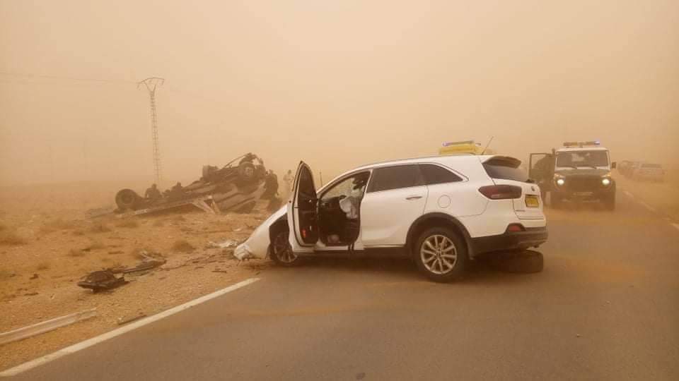 . وتمثل الحادث في إصطدام بين شاحنة نفعية لإسعاف السيارات بسيارة سياحية رباعية الدفع من نوع كيا.تسبب في إصابة 5 أشخاص بجروح خطيرة من بينهم طفلة رضيعة، تم نقلهم إلى العيادة متعددة الخدمات بمكمن بن عمار.