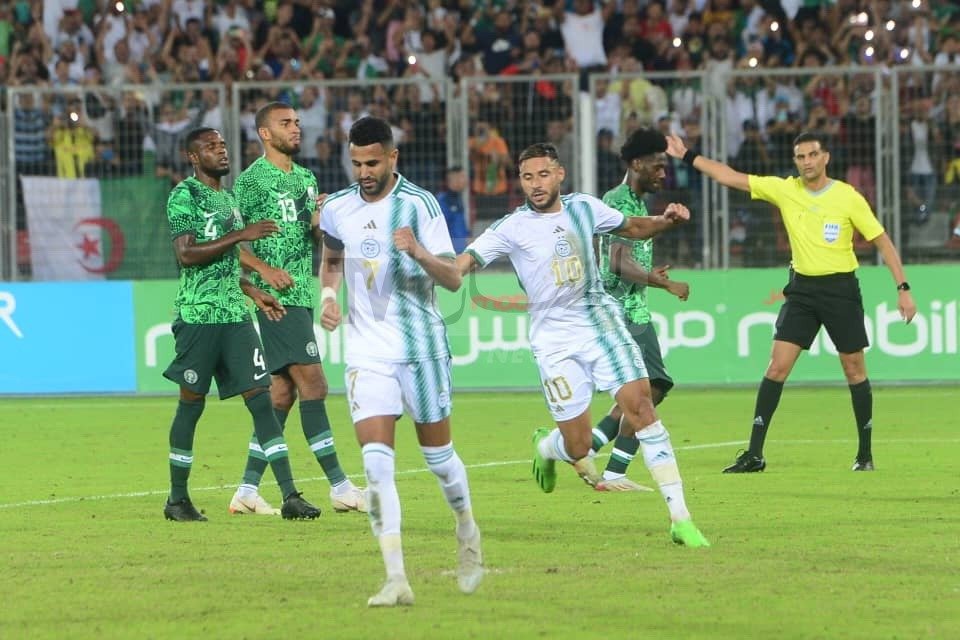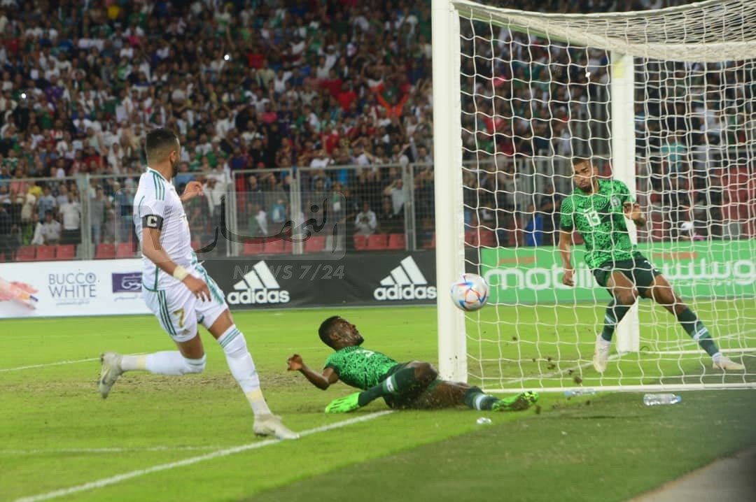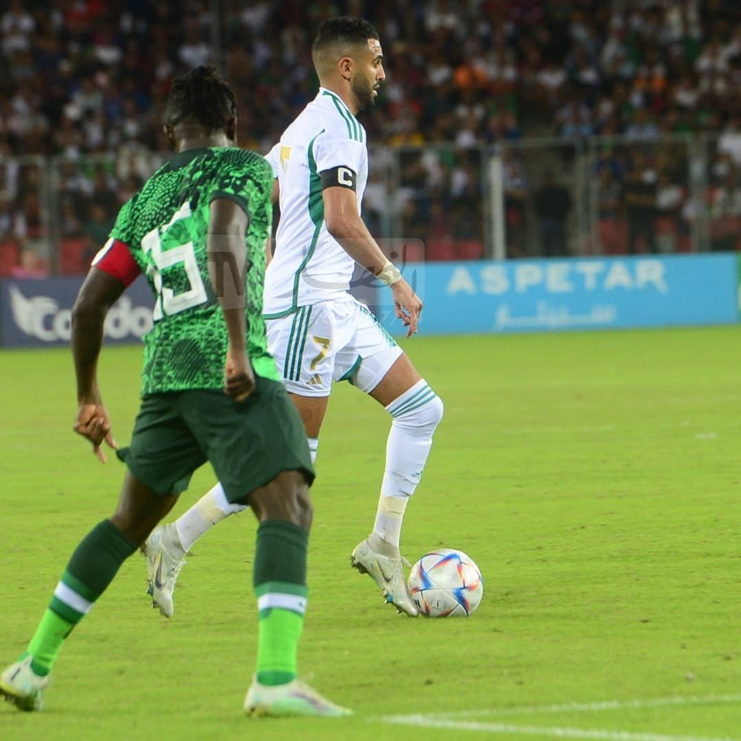 Après une première période sans efficacité et qui a failli se solder par l’avantage au score dès nigérians (9′,1-0). Avant que les Verts obtenaient, ensuite, un penalty juste avant la pause après un tir de Slimani dévié sur le poteau. Bensebaini, qui tentait de reprendre la balle, fauché dans la surface par Onyeka. Mahrez se chargeait d’égaliser en le transformant (42’, 1-1).
