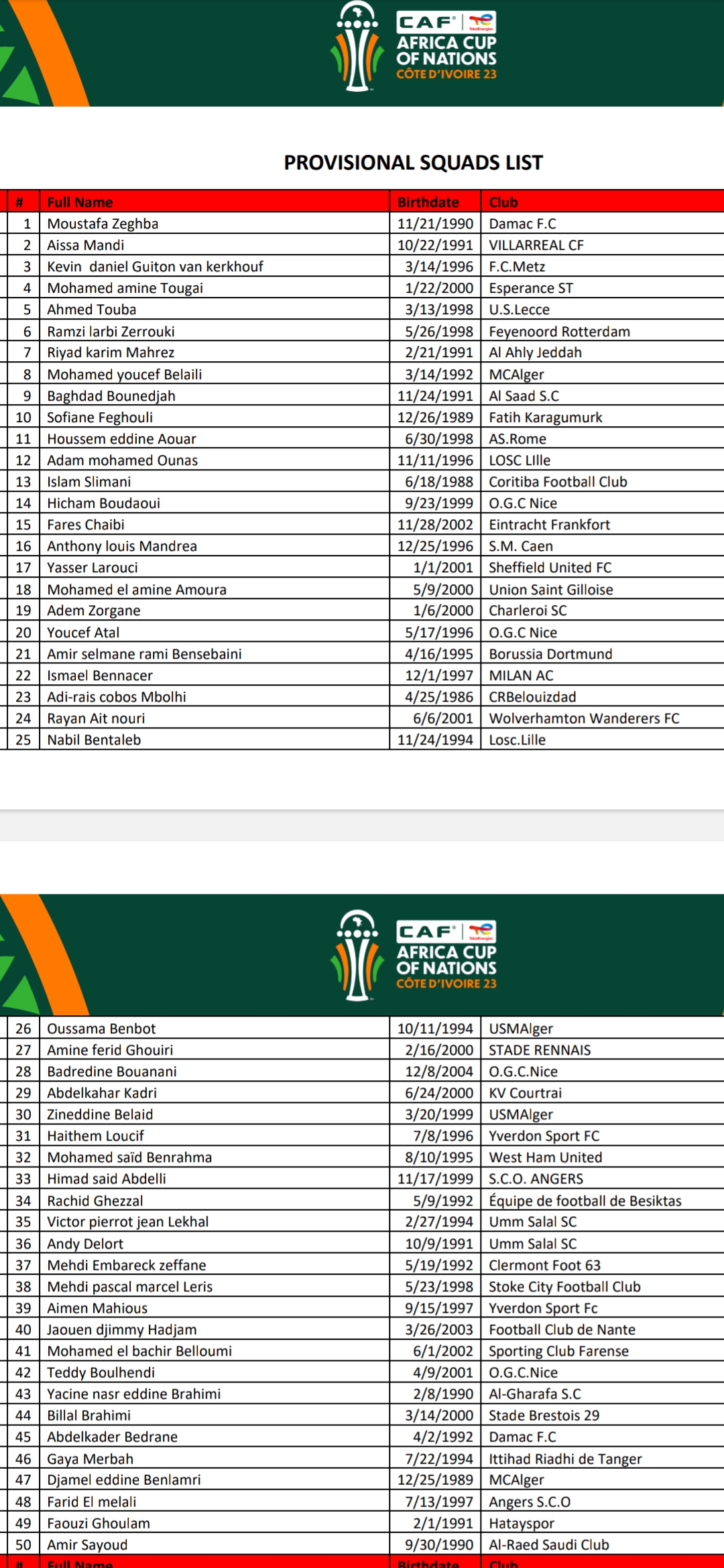 CAN 2024 : Belaili, Belamri, Mbolhi et d’autres surprises dans la liste élargie de Belmadi