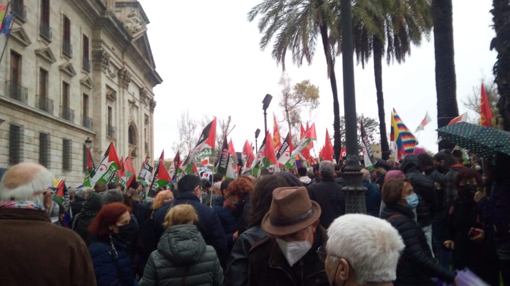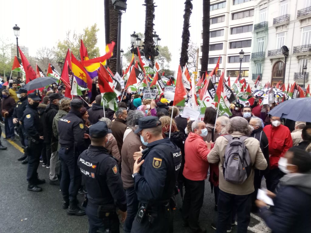 Les manifestants sont sortis dans plusieurs villes, dont Séville, Valence , Saragosse et Malaga, brandissant les drapeaux sahraouis et exprimant leur soutien au peuple sahraoui et à son juste combat pour la liberté et l’indépendance, et leur rejet de la décision de Madrid d’abandonner sa position traditionnelle de neutralité, et de soutenir le soi-disant “plan d’autonomie” proposé par l’occupant marocain.