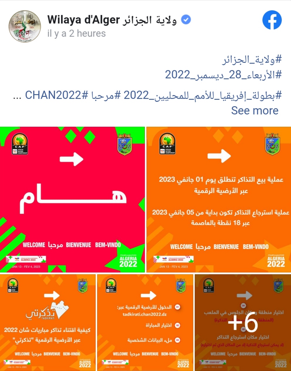 La même source souligne, également, que les billets pourront être achetés via la plateforme : tadkirati.chan2022.DZ; à partir du 1er janvier prochain.