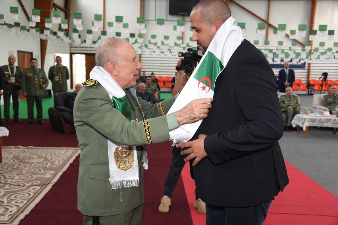 Par ailleurs, il convient de souligner que le Général d’Armée a honoré des personnalités du sport national, à l’instar de Mohamed Maouche, membre de la Fondation des anciens joueurs de l’équipe du Front de libération nationale de football, l’ancien Champion mondial et olympique Noureddine Morceli, décoré récemment en Corée du Sud par le Prédisent du Comité international olympique de l’Ordre du mérite international, l’entraineur de l’équipe nationale de football Djamel Belmadi, l’entraineur de l’équipe nationale de football des joueurs locaux Madjid Bouguerra, l’entraineur de l’équipe nationale de football de (U17) Arezki Remmane, ainsi que la famille de l’ancien entraineur de l’équipe nationale militaire de football, le défunt Abderrahmane Mehdaoui.