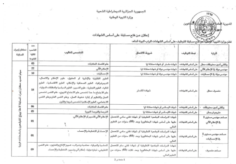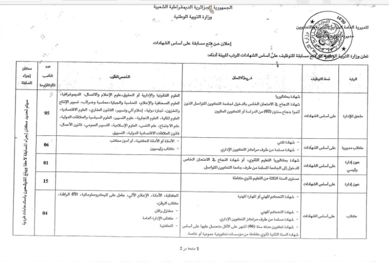 Algérie - Le Ministère de l’Education nationale annonce l’ouverture d’un concours sur titre ainsi qu’un concours professionnel, pour les grades cités, dans un communiqué rendu public hier par ce département.