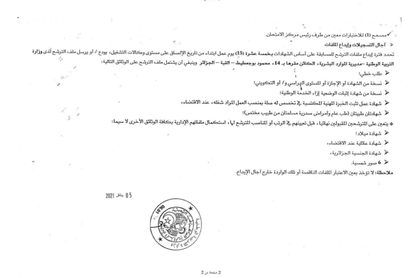 En effet, le ministère a indiqué que le délai de dépôt des dossiers des candidatures est fixé à quinze (15) jours, et ce à compter de la date de l’annonce de ce concours.