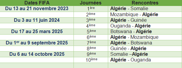 Selon un communiqué de la Fédération algérienne de football (FAF), la Confédération africaine de football (CAF) a transmis à toutes les associations membres le calendrier des 10 journées des éliminatoires continentales de la Coupe du Monde de la FIFA, United 2026.
