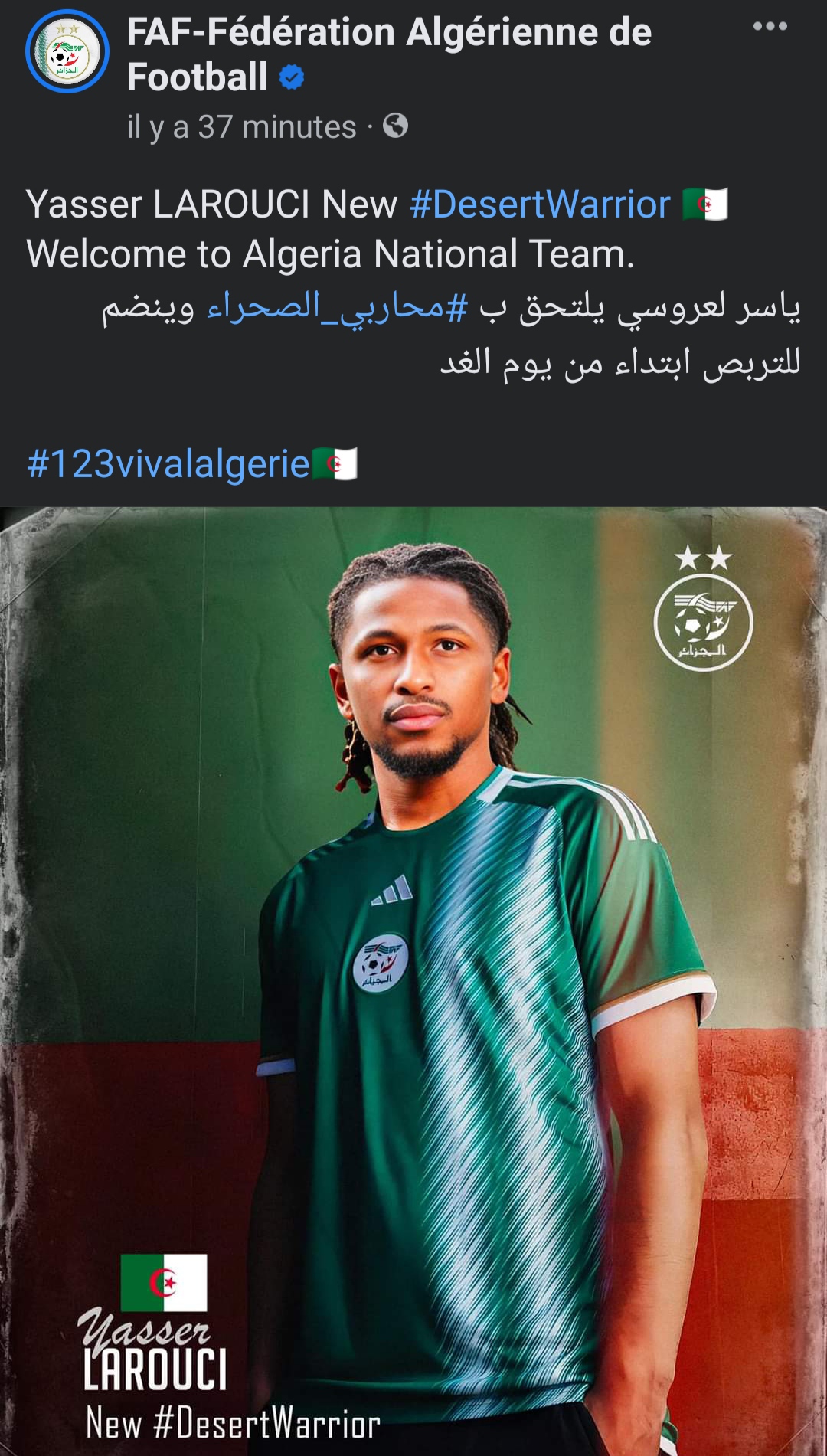 La Fédération algérienne de football (FAF) a annoncé, ce mercredi soir, que le défenseur Yasser Larouci sera présent dès demain au regroupement des Verts qui se tient à Constantine, en prévision du match amical de demain face au Cap Vert.