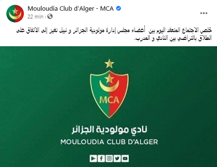 Algérie - La direction du Mouloudia club d’Alger (MCA) a décidé, ce jeudi 4 février, de se séparer à l’amiable des services de l’entraîneur Nabil Neghiz.
