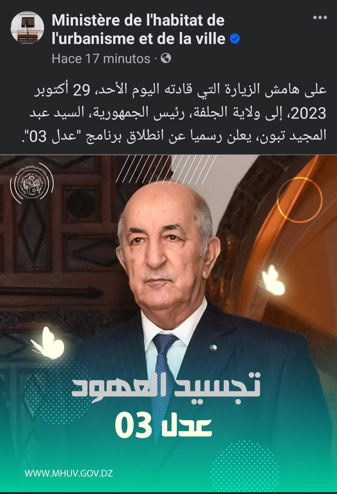 Le Président de la République, Abdelmadjid Tebboune, a annoncé ce dimanche le lancement officiel du Programme AADL 3 pour l’année 2024.