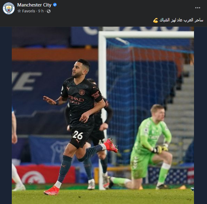 Impliqué sur tous les buts des Citizens, Mahrez a été le grand artisan de la victoire des siens sur le terrain d’Everton (3-1). Manchester City, via ses réseaux sociaux, a jeté des fleur à la prestation de l’international algérien :“Le magicien arabe est de retour !”,lit-on sur le compte Facebook du club mancunien.